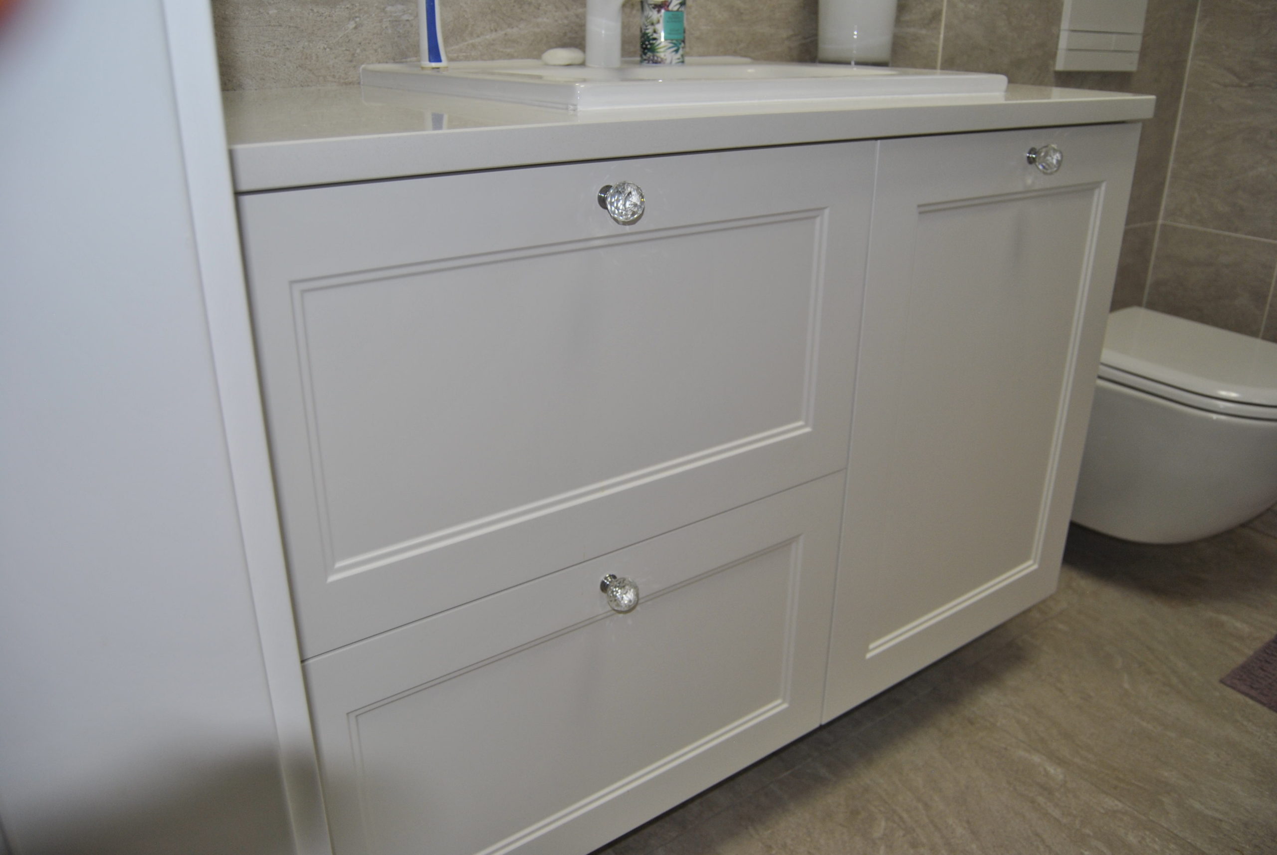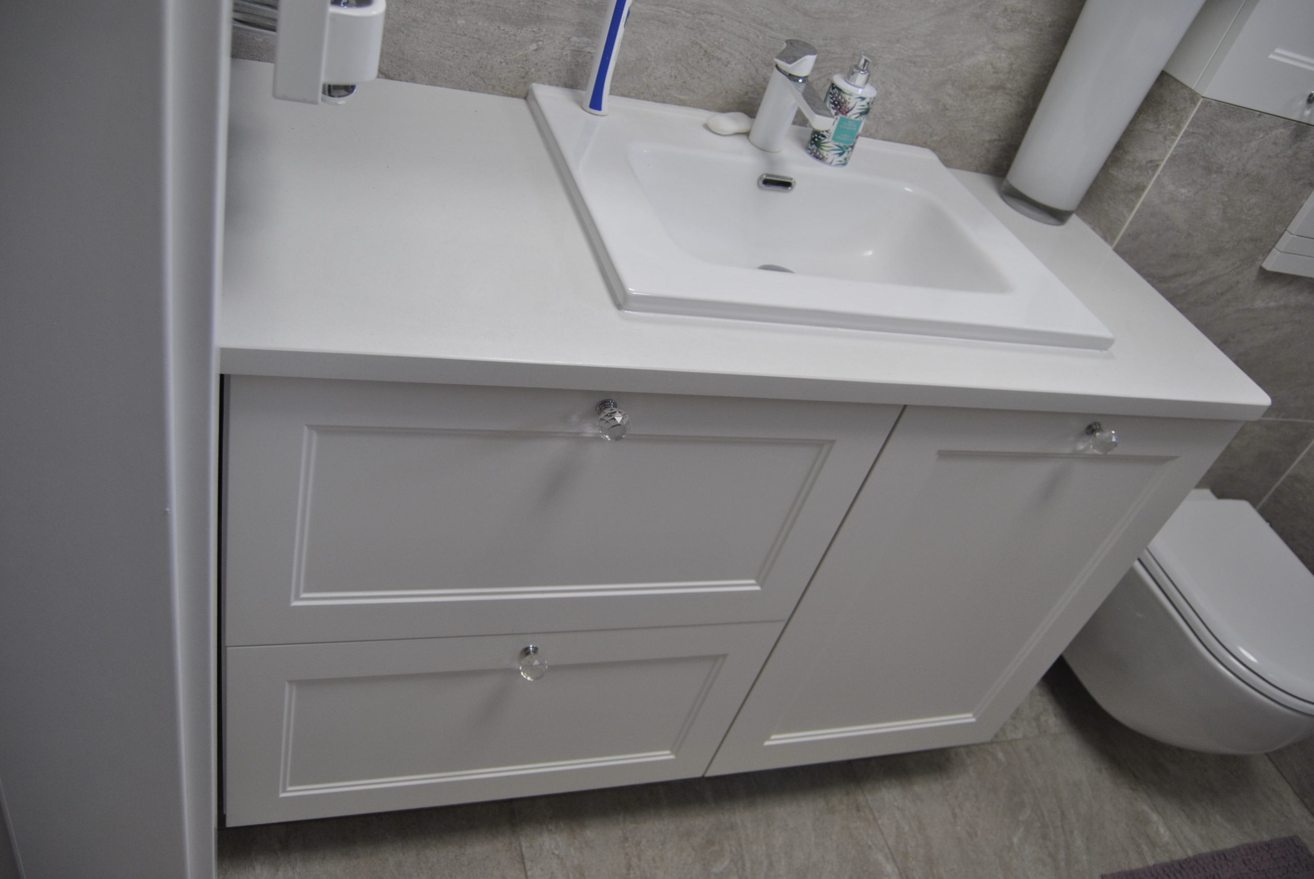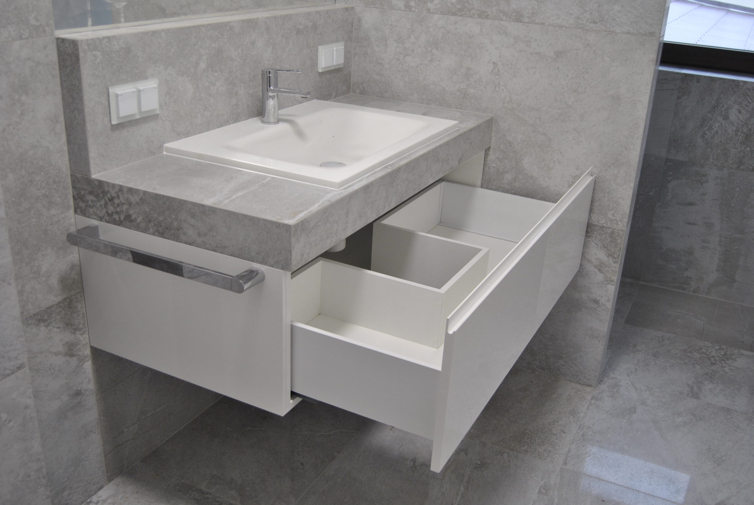 Nowoczesne i trwałe meble łazienkowe zaprojektowane z myślą o maksymalnym wykorzystaniu przestrzeni. Odpowiednio zabezpieczone przed wilgocią, dopasowane do armatury i stylu wnętrza. Połączenie funkcjonalności z estetyką daje efekt eleganckiej, spójnej zabudowy.