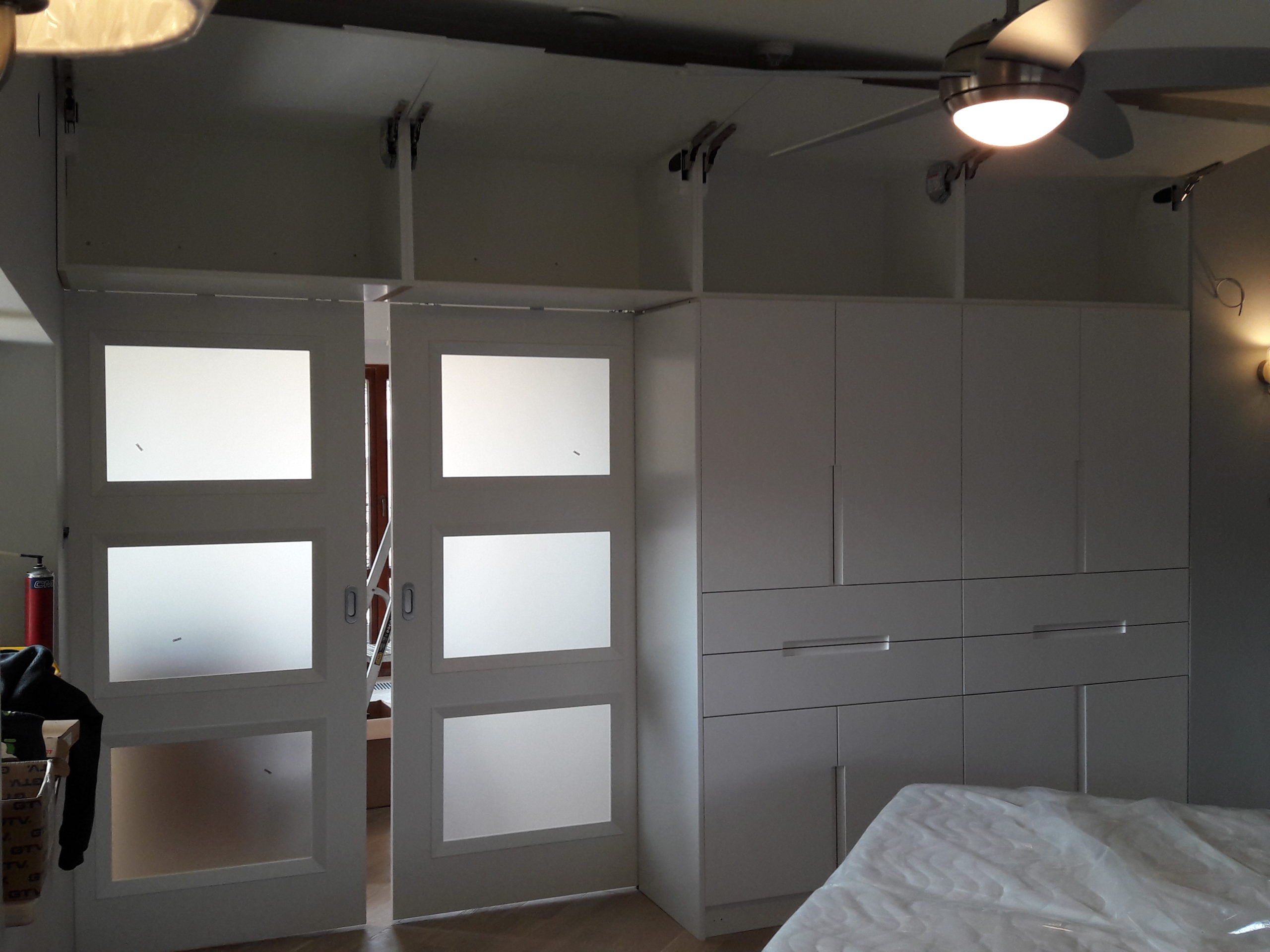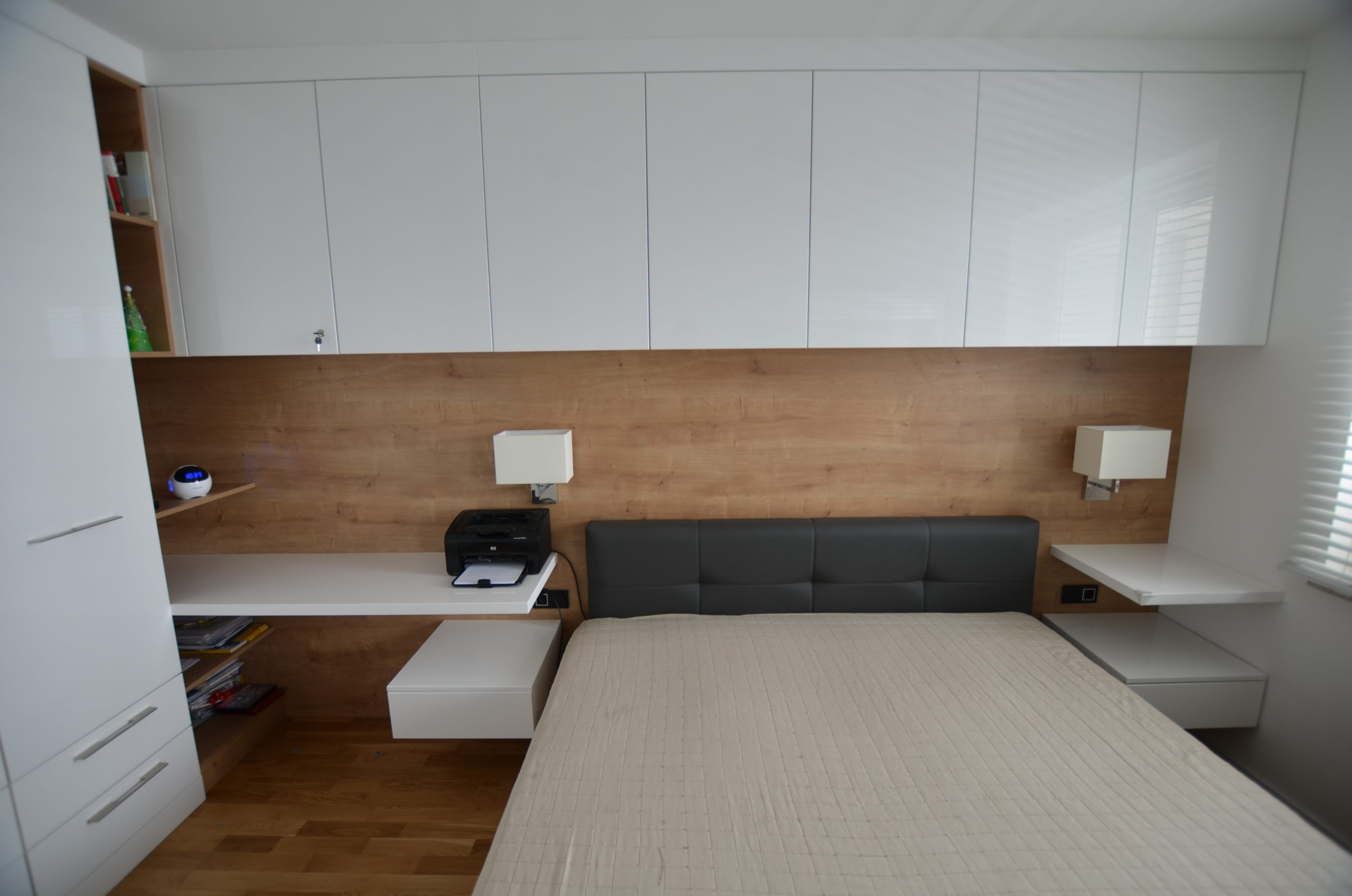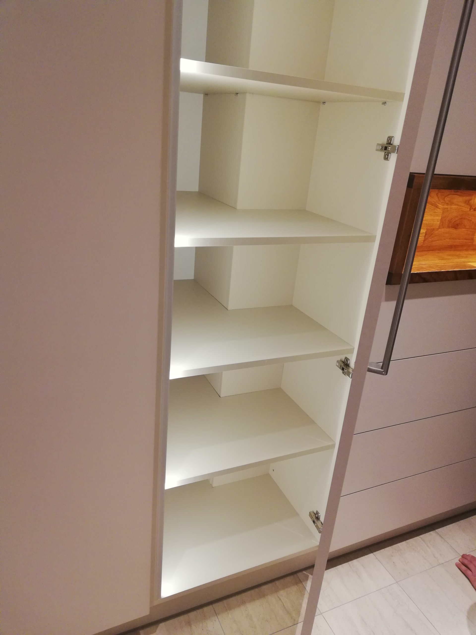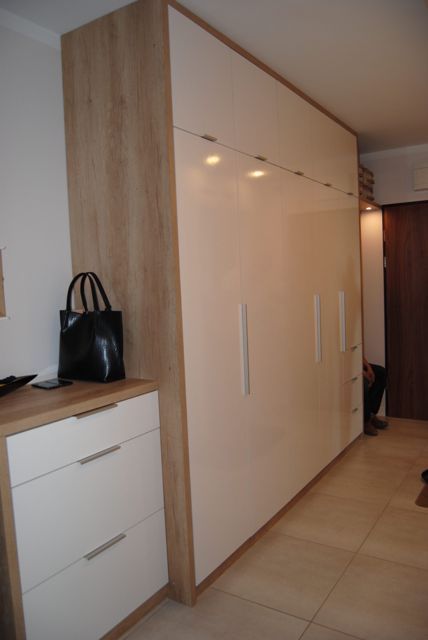 Płyta laminowana Egger lub Swiss Krono, fronty akrylowe lub lakierowane MDF, forniry naturalne, systemy przesuwne Sevroll, szkło lacobel, lustra, płyty tekstylne, akcesoria Blum lub GTV z cichym domykaniem, pantografy, kosze cargo.