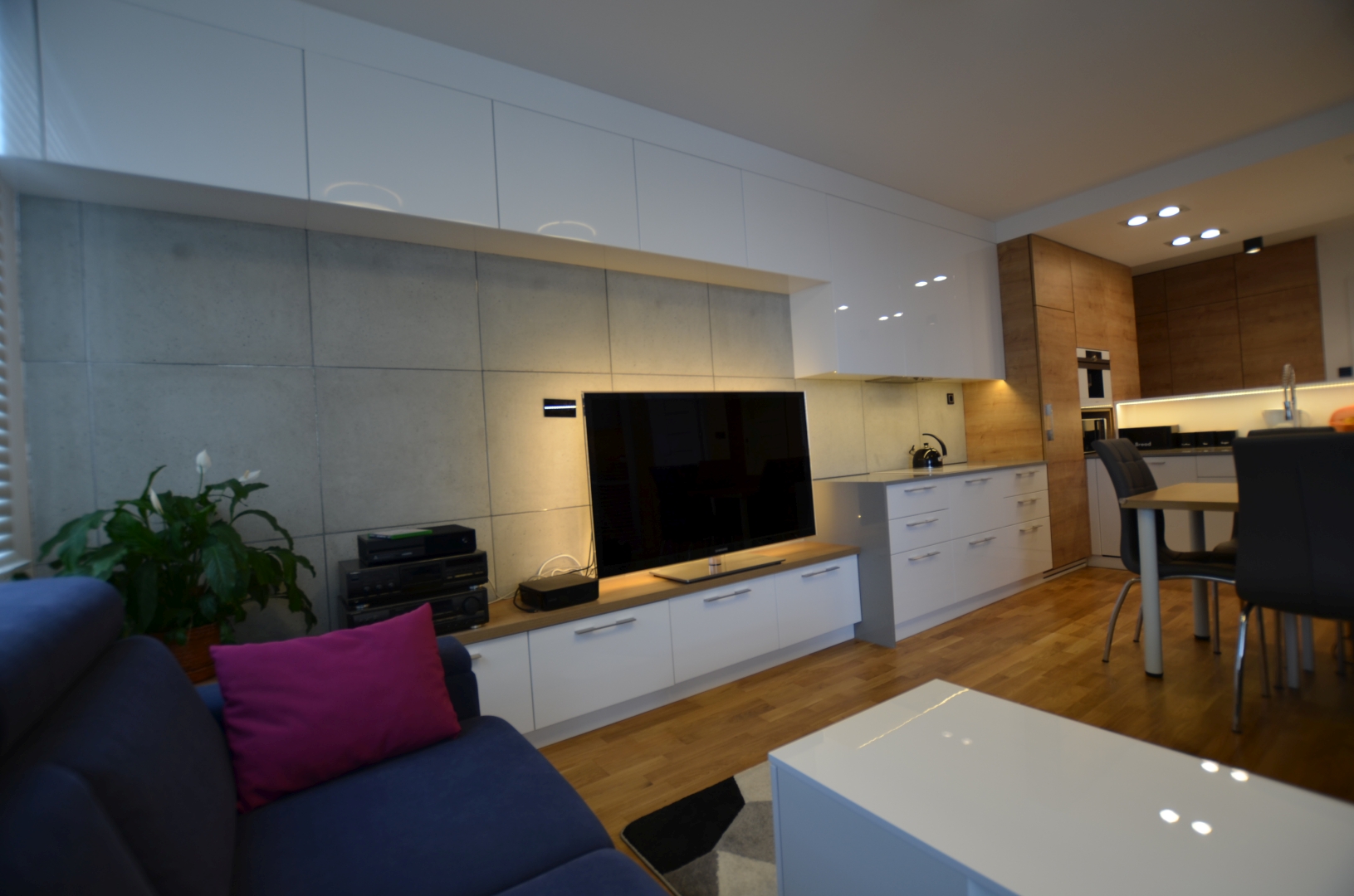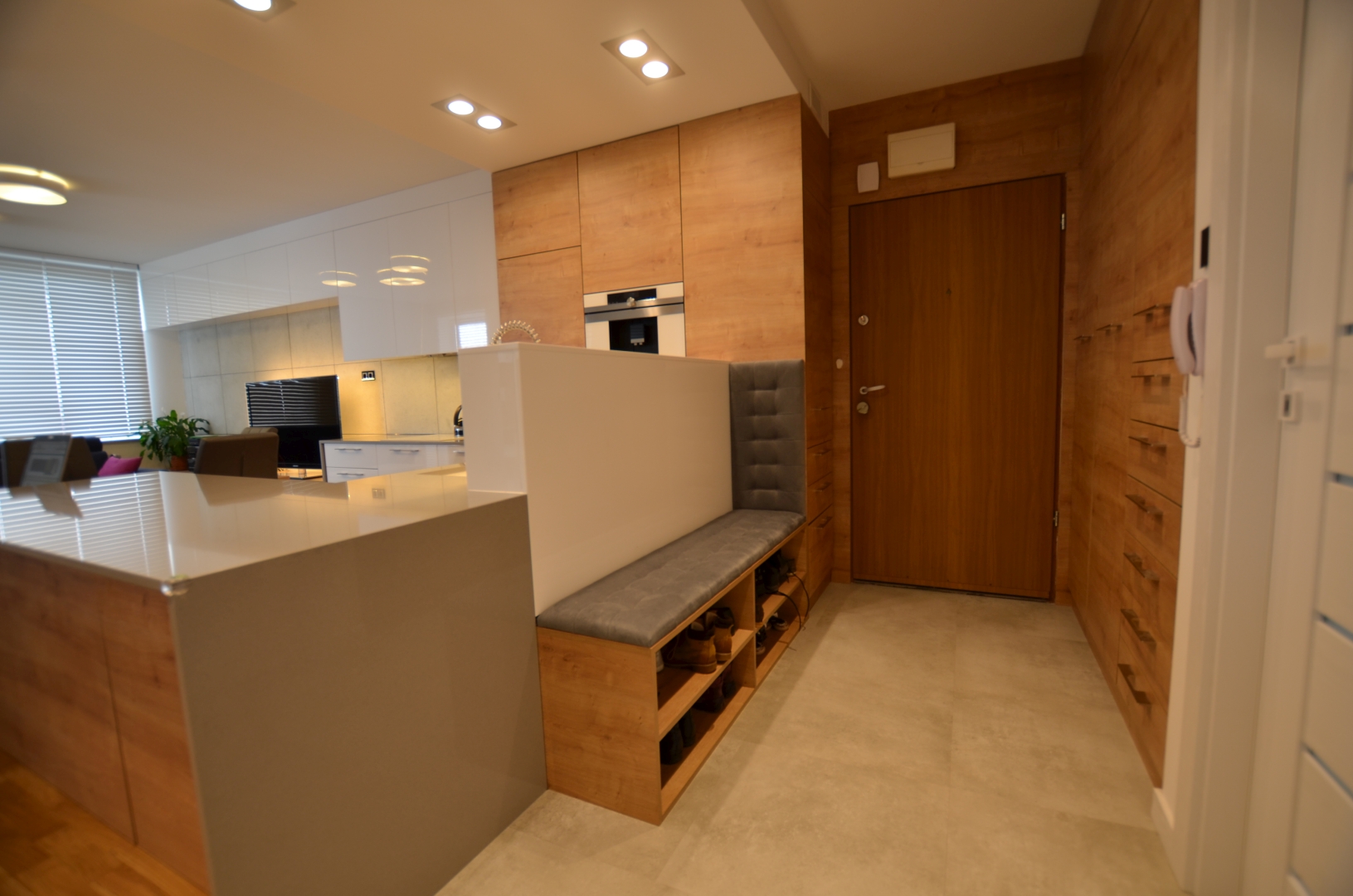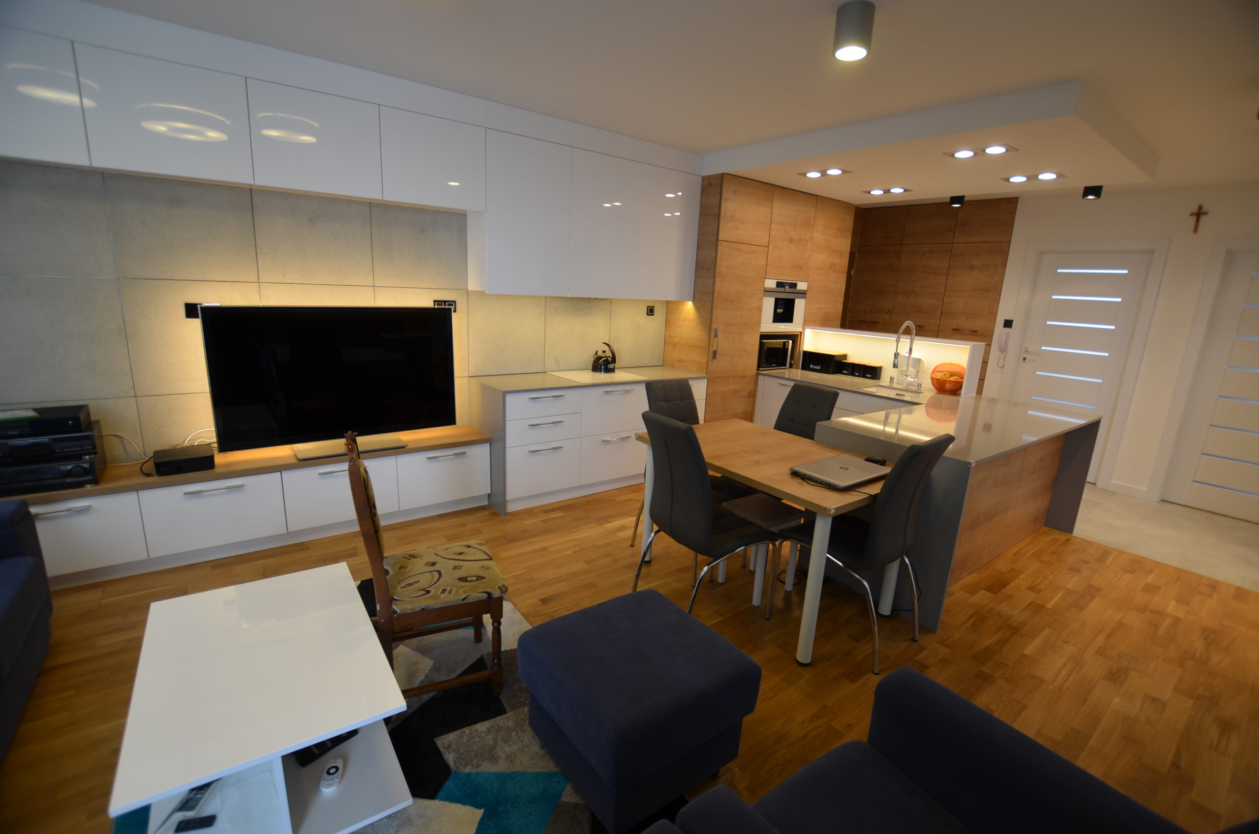 Nowoczesny azyl w sercu Lublina – kompaktowe mieszkanie zaprojektowane z myślą o maksymalnej funkcjonalności i elegancji. Całość zabudowy wykonana z lakierowanych frontów oraz wykończeń drewnopodobnych, które tworzą ciepły, a zarazem nowoczesny klimat. Minimalizm łączy się tu z dopracowanym detalem, tworząc harmonijną przestrzeń do życia.
