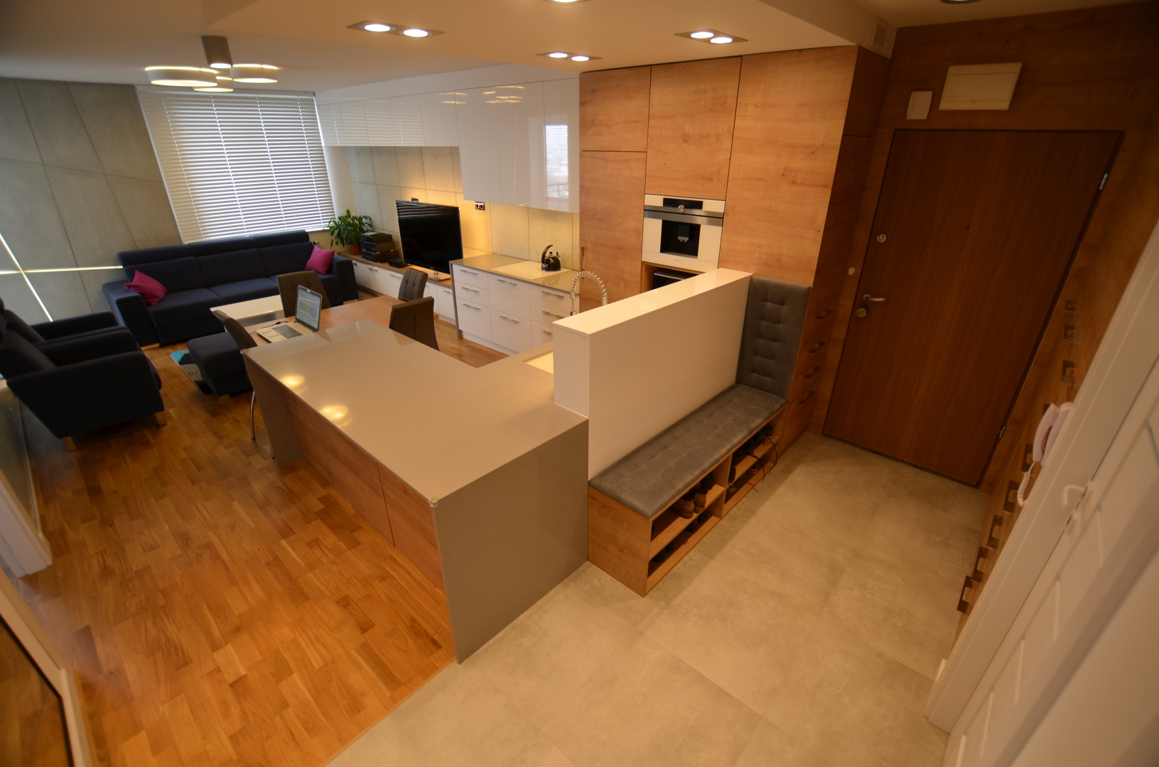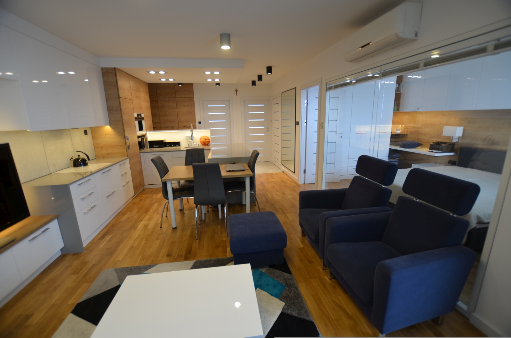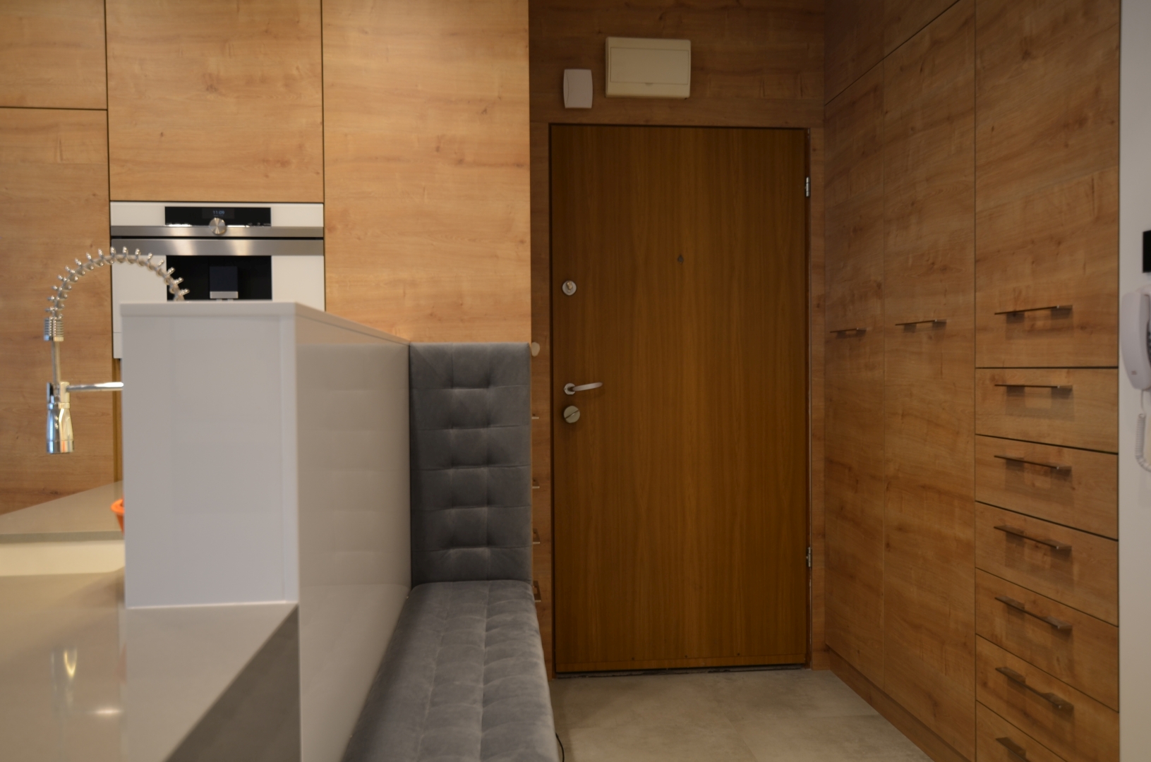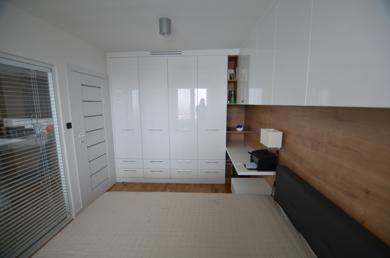 Nowoczesny azyl w sercu Lublina – kompaktowe mieszkanie zaprojektowane z myślą o maksymalnej funkcjonalności i elegancji. Całość zabudowy wykonana z lakierowanych frontów oraz wykończeń drewnopodobnych, które tworzą ciepły, a zarazem nowoczesny klimat. Minimalizm łączy się tu z dopracowanym detalem, tworząc harmonijną przestrzeń do życia.